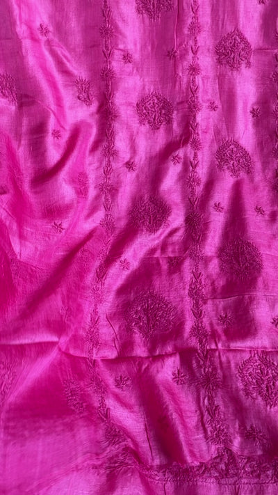 Pure Tussar Silk Chikankari Length with Dupatta - Hot Pink